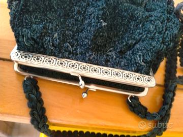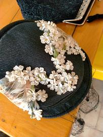 cappello donna con veletta in pizzo nero con borsetta in tessuto come nuove