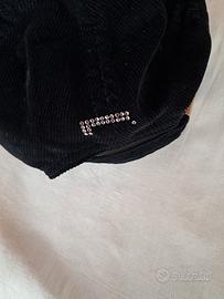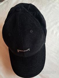 Cappello con visiera Colore nero In velluto a costine 100 % cotone Misura regolabile Marchio Pirelli Logo visibile in più punti Logo frontale e logo posteriore realizzati con strass