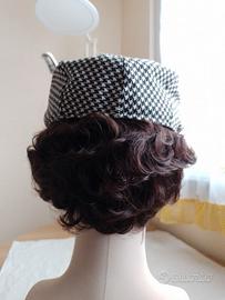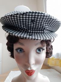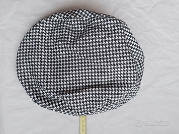 Cappello con visiera rigida, coppola, berretto flat cap, golf cap, driving cap, driver's cap, cabbie cap, baker boy cap, newsboy cap, Irish cap, Gatsby cap, scally cap, stampa fantasia pied-de-poule / houndstooth bianco e nero, foderato, circonferenza cm 57.