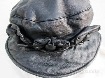 Cappello,copricapo da donna in pelle nero - vintage Con rose in rilievo buona conservazione - nuovo C00000534-79 cappelli,berretto,berretti
