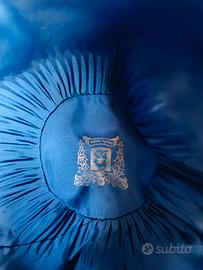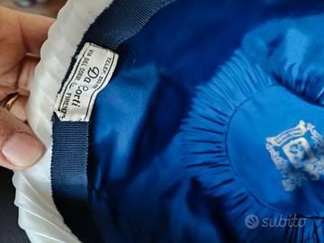 Cappello da cerimonia senza tesa, artigianale, bicolore in organza bianca e blu. marchio storico fiorentino di alta moda Corti Firenze. Etichetta presente. ottime condizioni. Da una parte è leggermente schiacciato che dall'altro. Non mancano parti. per informazioni scrivete.
