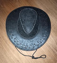 Cappello cowboy in ecopelle color testa di moro, laccio per fissaggio. In perfette condizioni, usato forse 2 volte, misura 59/60.