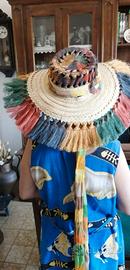 Cappello in stile messicano-cubano ben tenuto e in ottime condizioni. Materiale paglia e tessuto. Modello largo, vintage ed unisex.