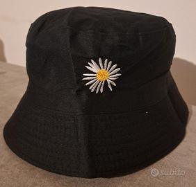 Cappello Bucket Reversibile con Margherita:Nero & Beige reversibile, ricamo margherita, stile dolce e fresco, adatta a abiti quotidiani & outdoor.