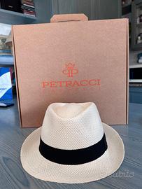 Cappello da uomo tipo Panama 100% in paglia naturale, Made in Italy. Marca Petracci. Taglia 57. Nuovo con cartellino