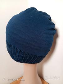 Cappello blu con cuori rossi, 30% lana, foderato in jersey blu