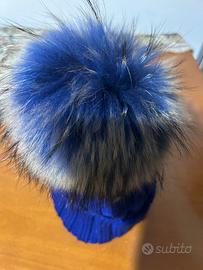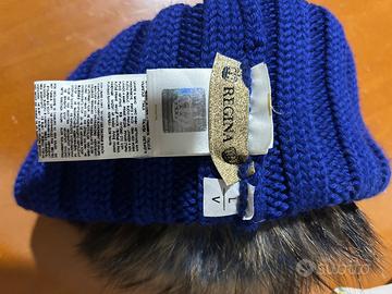 Cappello nuovo senza cartellino mai indossato Made in italy marca Regina 100%lana pon pon rimovibile di pelliccia di Murmasky