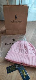 Berretto di lana Ralph Lauren unisex colore Pink Rosa, 80% lana e 20% nylon, caldo con trama a trecce e risvoltino a coste, logo ricamato, taglia unica con circonferenza di 50 cm, completo di bustina e busta di carta Ralph Lauren