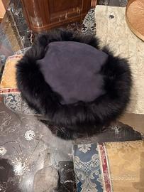 Cappello di pelliccia di volpe blu scuro e la cuoola in pelle di camoscio molto caldo mai indossato fatto fare dalla pellicciaia