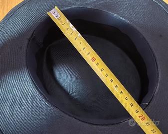 Cappello da donna, a tesa larga, con fascia a fiocco, colore blu, lavorazione sartoriale