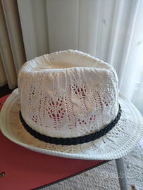 Vendo cappello donna estivo, in pizzo bianco con nastrino in pelle nera. Nuovo molto bello.