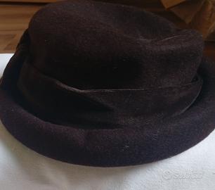 Cappello marrone scuro in feltro, con nastro e fiocco , circonferenza 58 cm.