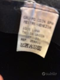 Cappellino di panno nero con fascia e bordo velluto grigio. Lana 100%. Taglia unica.