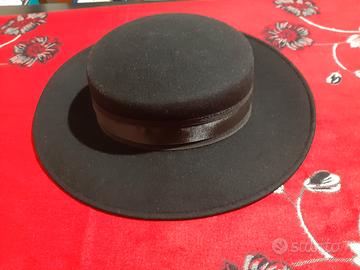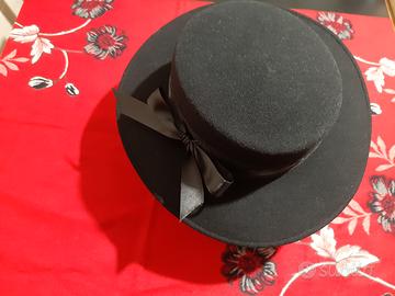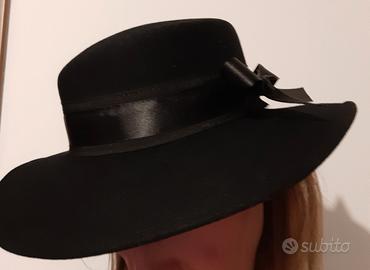 Cappello da donna Panizza a tesa larga nero, fatto a mano. Made in Italy.