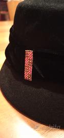 diametro 53/54 cappello vintage anni 70 con applicata una stupenda spilla di strass rosa brillanti bordino in velluto molto bello