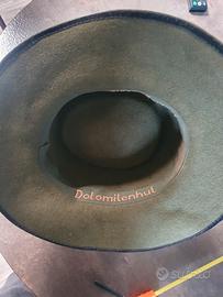 Cappello feltro donna dolomitenhut 100%originale. Usato ma in buono stato. Senza difetti particolari, come da foto. Leggermente scolorito all'interno, foto 7. Inserito foto misure centimetri