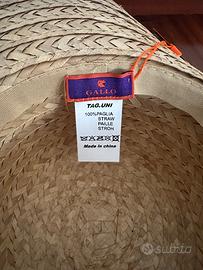 Cappello in paglia marca Gallo. Con nastro che si può togliere. Nuovo, con etichetta.