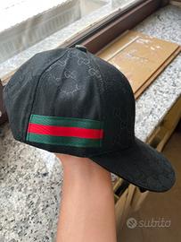 Vendo cappellino Gucci nero, con banda Web verde e rossa sul lato.