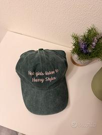 Cappellino verde con scritta ricamata a macchina rosa “Hot Girls Listen to Harry Styles”