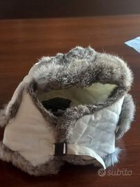 cappello donna imbottito in lapin, esterno in poliestere trapuntato, gancio di chiusura sotto il mento
