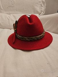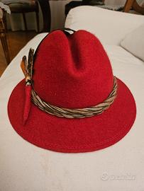 cappello donna in feltro di lana colore rosso con piume. come nuovo.