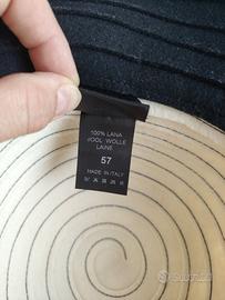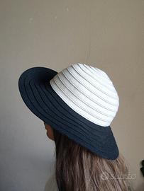 Cappello in feltro di lana, a spirale, bianco panna con impunture e tesa nero, fiocchetto laterale, marca Luca Manzoni Milano (v. foto), tg. 57 (diametro interno 18 cm). Nuovo, mai usato, come da foto. Prezzo leggermente trattabile.