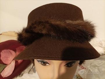 vendo cappello in feltro da donna, con pelliccia di visone creato da modista diametro circa 54cm ottime condizioni TESTA NON IN VENDITA