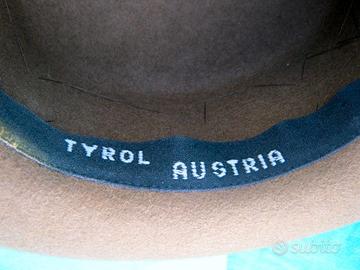 Cappello in feltro originale Dolomitenhut Tirolo Austria. In ottime condizioni. usato pochissimo. Circonferenza interna cm 53 . COLORE MARRONE . Con fascia.
