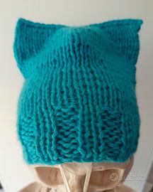 Cappello in lana con orecchie da gatto fatto a mano dall'artigiana Marigurumi (mia mamma).