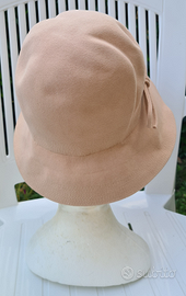 Cappello da cerimonia in panno di lana anni 60 con fiocchetto decorativo beige