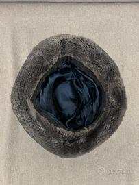Cappello in tessuto con bordo in pelliccia vera di castorino grigio circonferenza testa 55/56 cm