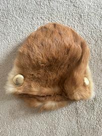 Cappello caldo e raffinato, realizzato con pelliccia color miele/cammello, dotato di due bottoni decorativi dorati sui lati che ne valorizzano lo stile.