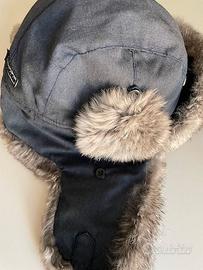 Cappello di pelliccia di coniglio Invicta – Vintage anni '80/'90 in pelliccia naturale di coniglio, colore blu. Modello con paraorecchie, caldo, leggerissimo e super confortevole.