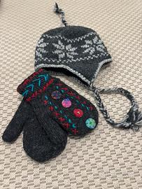 1 Cappello grigio chiaro tinta unita 1 Cappello grigio scuro fantasia 1 Guanti lana
