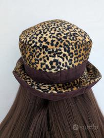 Cappello con fantasia leopardata e dettagli in marrone. Fodera trapuntato nero