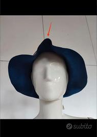 circonferenza 57 cm 100% lana piccola.piegatura dove indica la freccia rossa colore blu scuro morbido e leggero