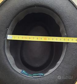 Cappello da donna in feltro di storica bottega locale, color marrone, con fascia e fiocco laterale, tesa media modello Borselino.