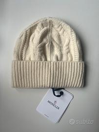 Cappello moncler in lana. L’articolo non è mai stato utilizzato ed è originale. Tessuto morbido e colorazione panna. Presenta ancora il cartellino. Spedizione rapida e imballaggio ottimo.