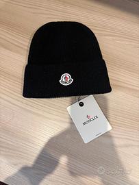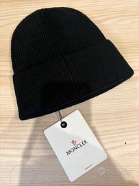 Cappello Moncler originale in lana, colore nero, con logo frontale. Condizioni eccellenti, etichette ancora attaccate.