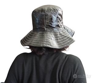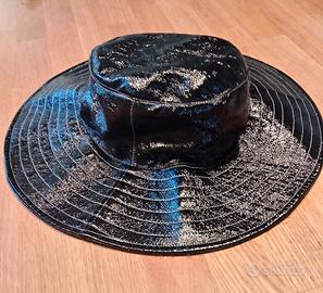 Cappello da pescatore (bucket hat) in vinile di Zara. Impermeabile con finitura lucida effetto vernice, presenta le tipiche cuciture circolari sulla tesa ed è ideale per proteggersi dalla pioggia con stile. Taglia M. Nuovo senza cartellino.