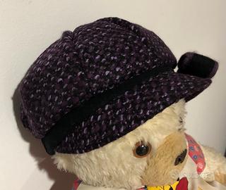 Cappello nero viola con visiera e fiocco. prodotto in Italia, made in Italy. Circonferenza 55/60 è elasticizzato.