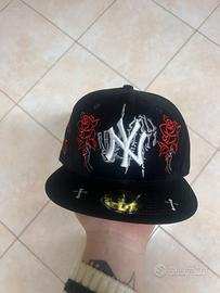 Vendo cappello originale New Era 59FIFTY New York Yankees. Colore nero con logo NY bianco effetto distressed e ricami rose rosse + croci, design molto particolare e streetwear. Taglia: 7 1/8 (56.8 cm) Condizioni: ottime, come da foto Perfetto per outfit streetwear o collezione. Disponibile consegna a mano o spedizione.