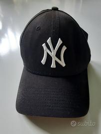 vendo cappello New Era nero con visera, laccio regolabile con fermo in acciaio. Il cappello è usato ma perfetto, tutto come in foto