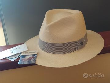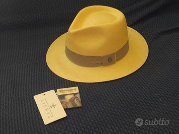 Traveller di Lierys realizzato in paglia panama è perfetto sia per la vacanza che per gli eventi estivi in città. Il cappello di paglia è proposto in un gradevole look tinta unita abbinato ad un nastro decorativo in gros-grain a righe di gusto raffinato. Completa il tutto una spilla metallica con logo. Una fascia interna in tessuto ad asciugatura rapida completa la sensazione di comfort estivo.