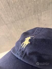 Cappellino polo Ralph Lauren blu con cavallino bianco indossato pochissime volte condizioni ottime taglia unica per tutti e regolabile con cinturino