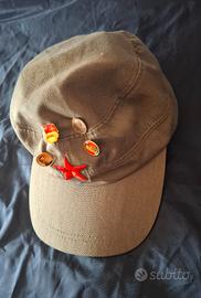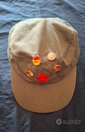 IL CAPPELLO HA UNA STELLA ROSSA RICAMATA DI CIRCA 4 CENTIMETRI DA PUNTA A PUNTA, 4 SPILLE DI CUI 2 CON FIGURE A COLORI, 1 CON FIGURA DORATA, UNA COLOR ORO E ROSSO CON LA BANDIERA POPOLARE CINESE. (COME DA FOTO).