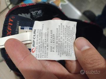 ⚡Vendita fast, prezzo fisso⚡ Cappello Rip Curl da ragazzo (size 54 cm, elasticizzato). Fantasia tartan pattern rosso/borgogna/nero/bianco/blu navy. Perfetto per look skate/street/urban. Tessuto: poliestere, rayon e PU spandex. #Streetwear #capred/black tartan #Casquette #Gorra #Jungen-Cap, #rot/schwarz kariert #baseball