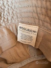 Cappello modello pescatora brand Woolrich in cotone beige. Ha una piccola tasca Circonferenza cm 56