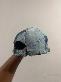 Vendo cappellino in denim stile new era in jeans mix chiaro e scuro effetto strappato, look vintage e logo toppa nera NY sul frontale. Prodotto nuovo handmade possibilita di personalizzare in pvt. Adatto per un outfit casual e alla moda.