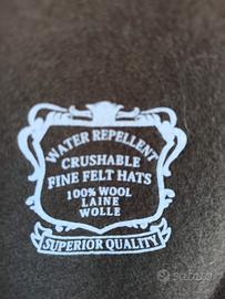Questo Cappello Trilby in tinta unita Verde è realizzato in feltro di lana 100%. Impermeabile e morbidissimo, adatto da indossare in qualsiasi circostanza e occasione. Il classico, ampio nastro decorativo in gros-grain, colore marrone che forma un fiocco laterale decorato con un piccolo logo metallico recante la scritta "DNA made in Italy"